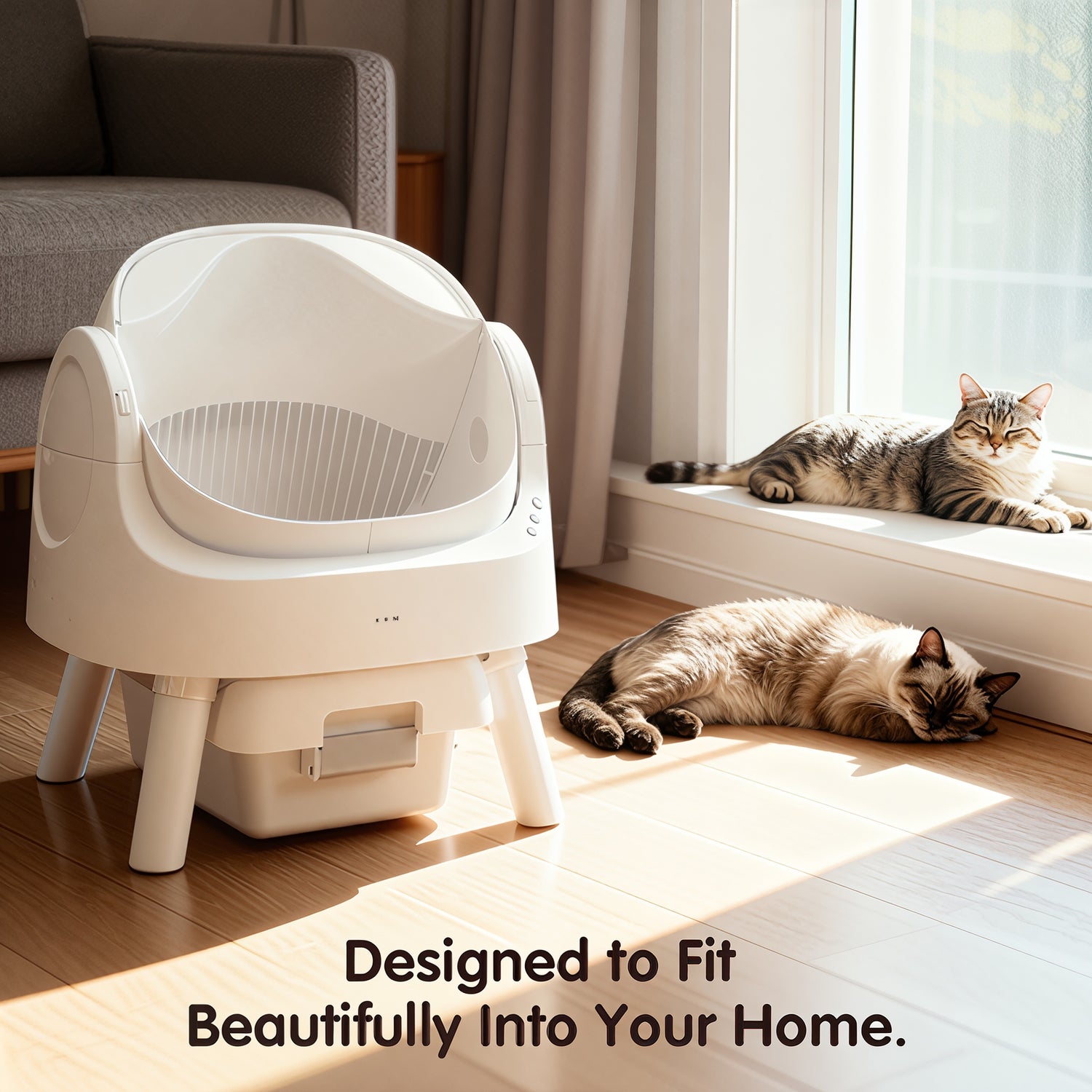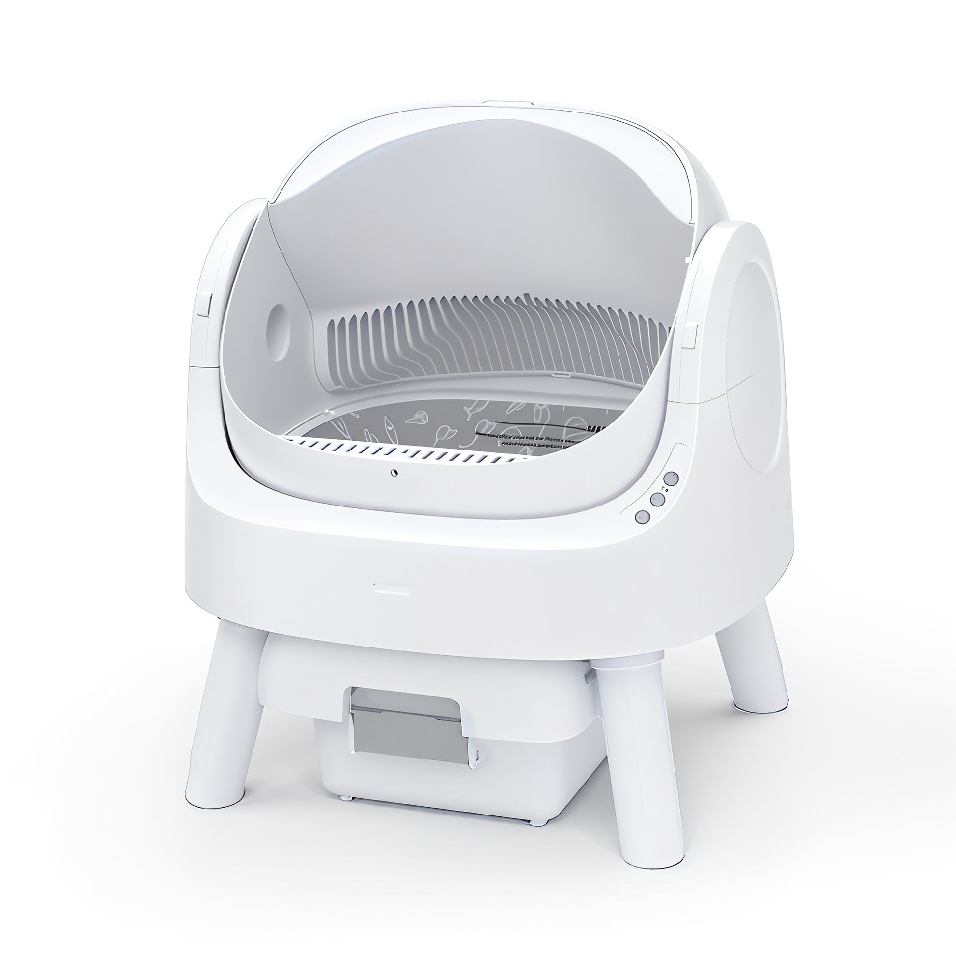 This self-cleaning litter box automatically scoops waste and controls odors, keeping your home fresh. Its open-top design provides easy access for both cats and owners, while included waste liners and trash bags make clean-up hassle-free.