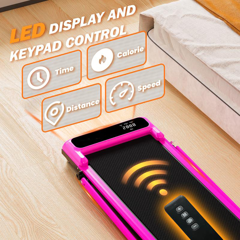 Built-in wheels and a lightweight foldable frame make moving and storing the treadmill quick and effortless.